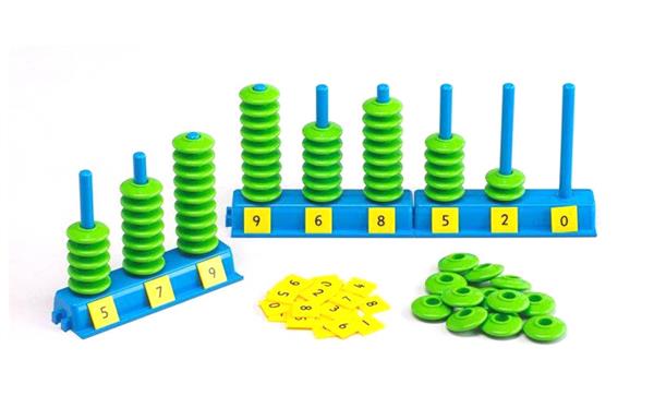 Fijnmotorisch spel met betrekking op rekenen. De kinderen plaatsen de kralen over de stokjes op basis van een getalkaart. Hiermee kan ook de getallenrij worden ingeoefend. De set gaat tot 9! Inclusief 3 standaarden, 9 staven, 90 kralen en 90 getalkaarten (0 t.e.m. 9).